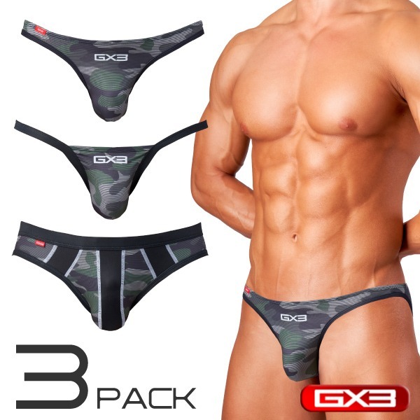 日本 GX3 金屬光澤DX 軍綠迷彩 V型比基尼 火辣比基尼 寬線比基尼 三角褲 三件組 男內褲 k2371